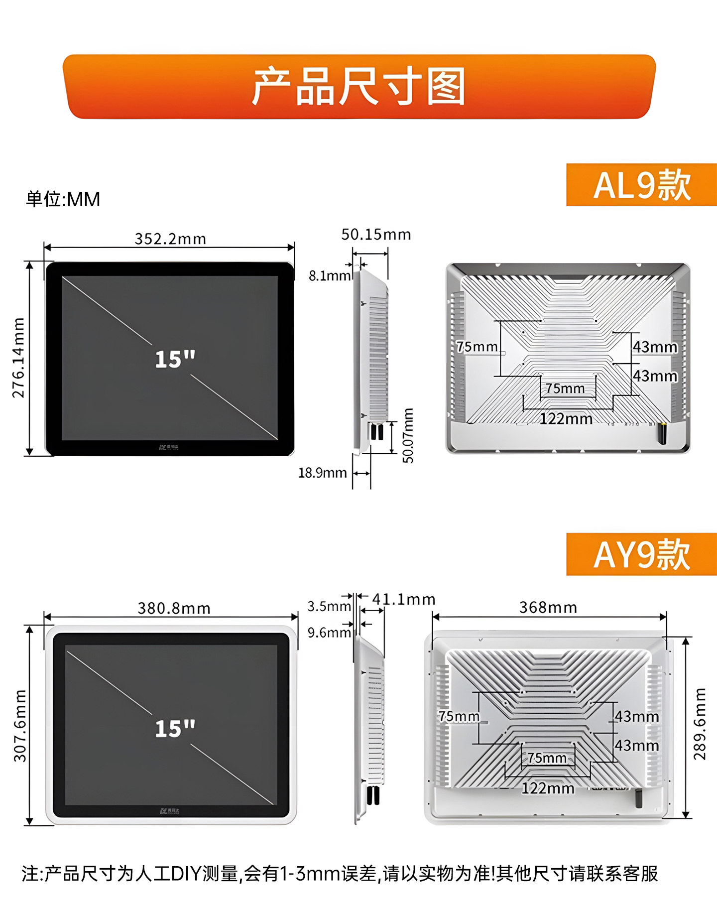 得麗瓏12/17/19/15寸嵌入式工控一體機